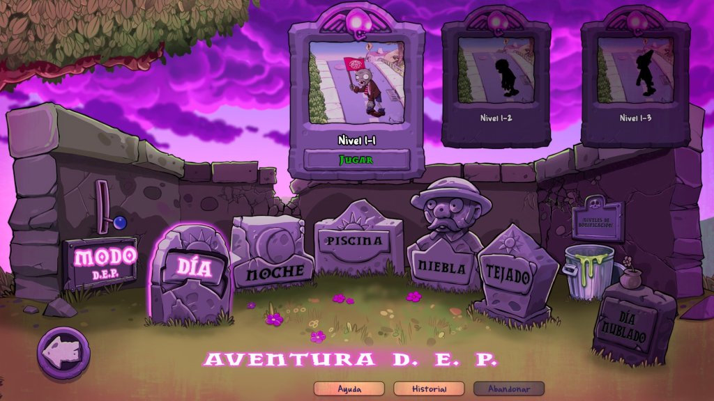Una vez más el modo aventura es la columna vertebral del juego, en total son 5 escenarios, cada uno con 10 niveles, que irán aumentando progresivamente su dificultad. Aun así, el juego te irá premiando con nuevas y mejores plantas. Y para los más expertos o impacientes, se agregó un botón que multiplica hasta en 2.5 la velocidad de los zombis, esta mejora ya se había visto en el juego de celulares, pero no estaba presente en el juego original.