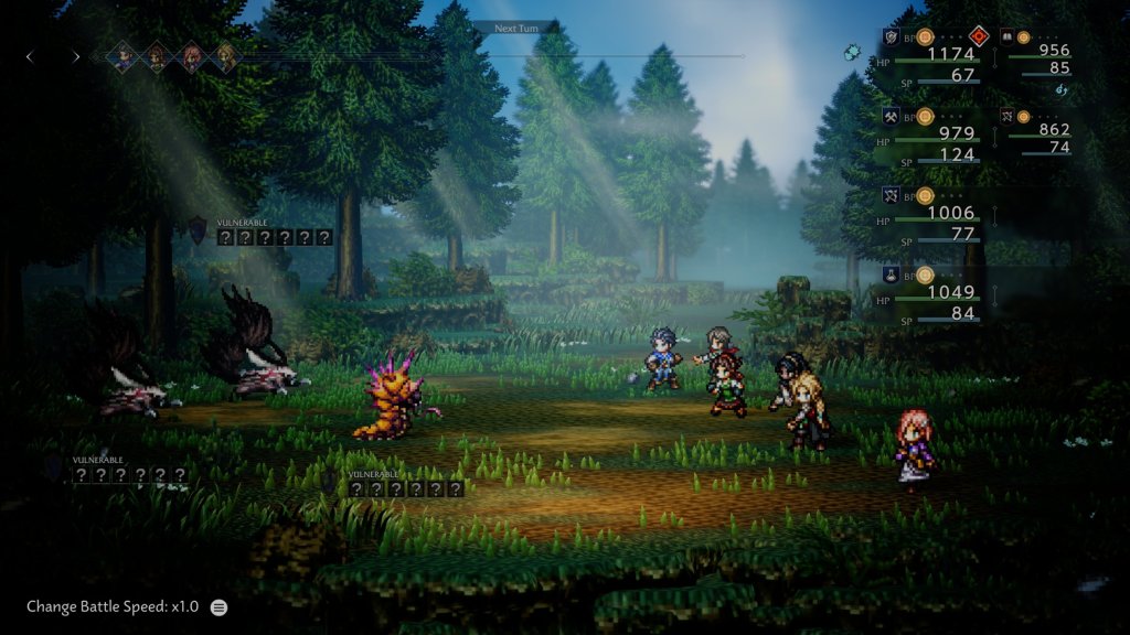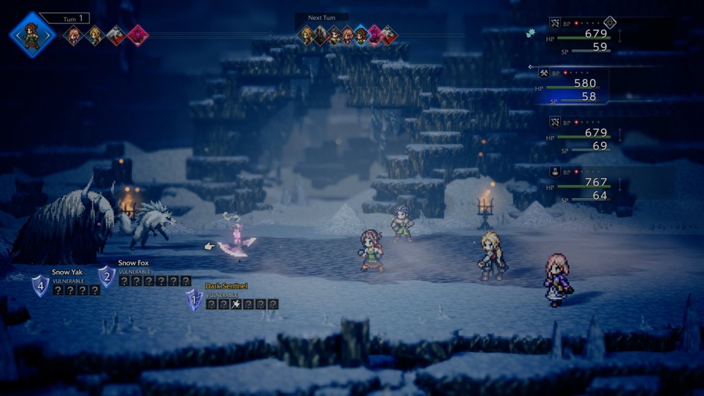 ¿Y qué sería de un Octopath Traveler sin su combate? Como es natural, tenemos batallas por turnos donde el objetivo principal es causar un Break para dejar al enemigo aturdido y aprovechar ese momento para lanzar nuestros mejores hechizos, habilidades o ataques.