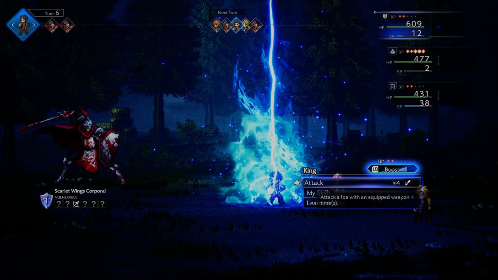 Para lograr un Break más rápido, podrás usar BP o Puntos de Batalla. Estos te permiten hacer ataques adicionales o potenciar hechizos y habilidades. Ganas un punto por turno y puedes acumular hasta cinco, aunque solo es posible usar tres por turno.