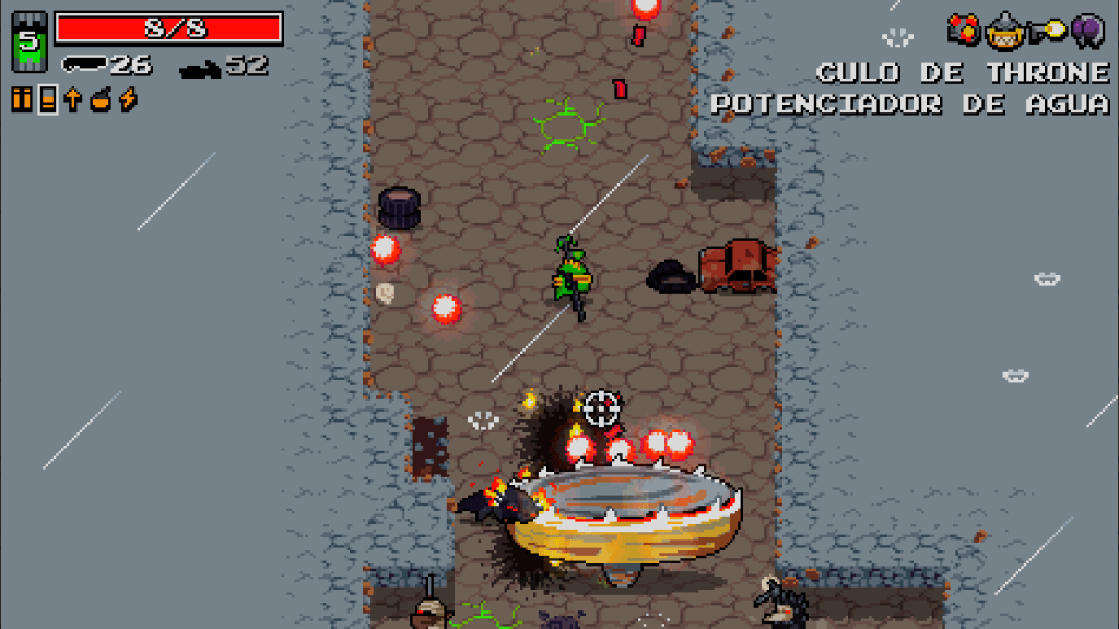 Para quienes llegan por primera vez al juego, les cuento que Nuclear Throne es un roguelite de acción con perspectiva cenital donde el objetivo es abrirse paso por los escenarios generados proceduralmente, enfrentando oleadas de enemigos cada vez más difíciles.