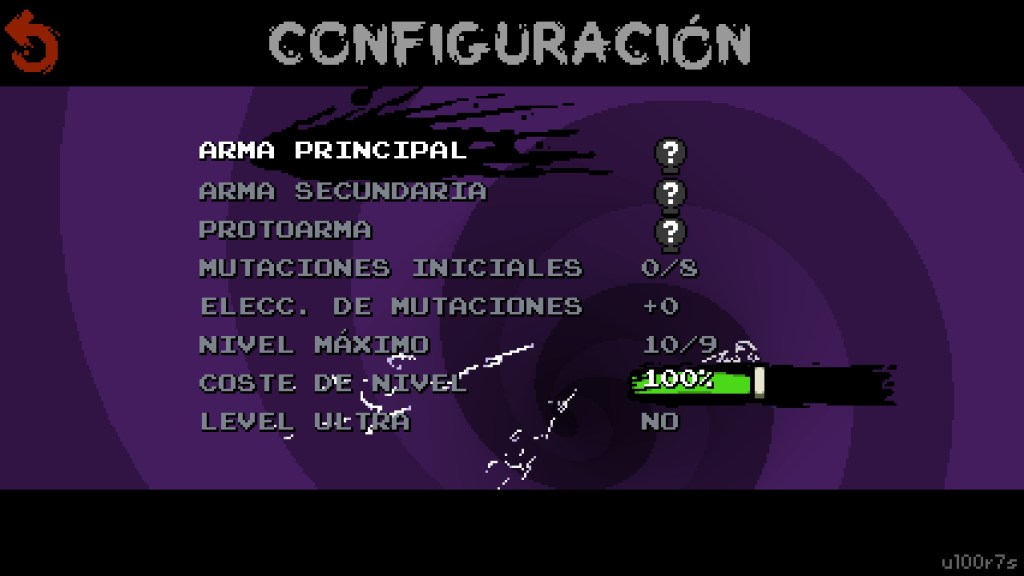 Otro agregado importante es el modo personalizado, que permite modificar parámetros del juego para aumentar o disminuir la dificultad. Así como opciones extra, pudiendo elegir tus armas iniciales, las mutaciones, el nivel máximo de personaje o si te gustó un escenario y conoces el código de su semilla, poder cargarlo y jugar sin esperar a que te salga de forma aleatoria.
