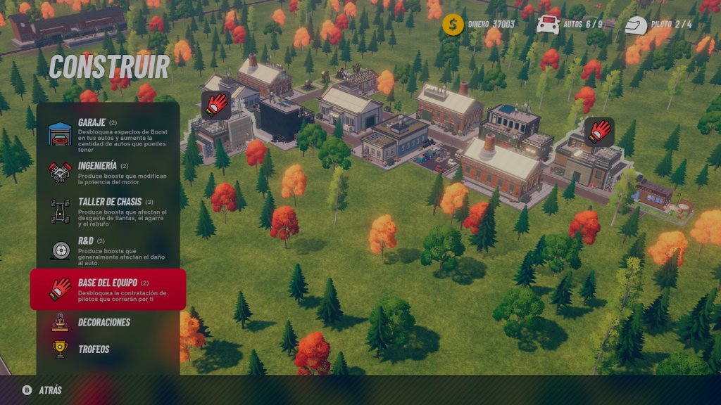 Estos boost se liberan según el edificio que construyas, con Ingeniería creas mejoras para el motor; con el Taller de Chasis obtienes mejor agarre y reduces desgaste de llantas; con R&D reduces daño y con la base del equipo aumentas la cantidad de pilotos que puedes contratar.