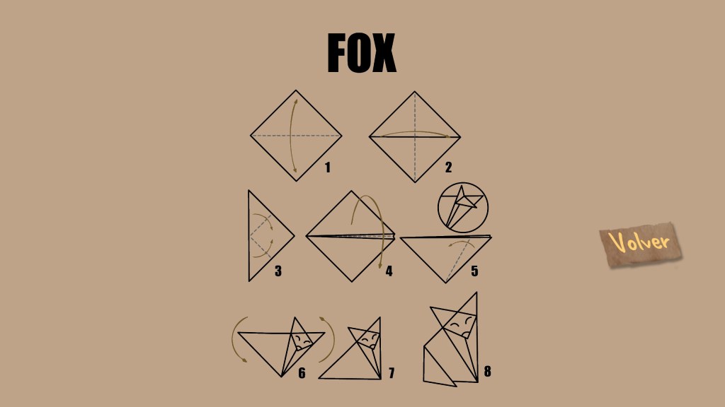 El juego cuenta con un hub central donde podrás gastar las monedas a cambio de aspectos para tu bolita de papel. También podrás desbloquear pequeños tutoriales para hacer tus propios diseños de origami en la vida real, aunque son algo vagos en las instrucciones. Hay figuras fáciles de lograr, como el shuriken que me quedó muy bien, aunque con el avión a reacción fracasé de forma estrepitosa.