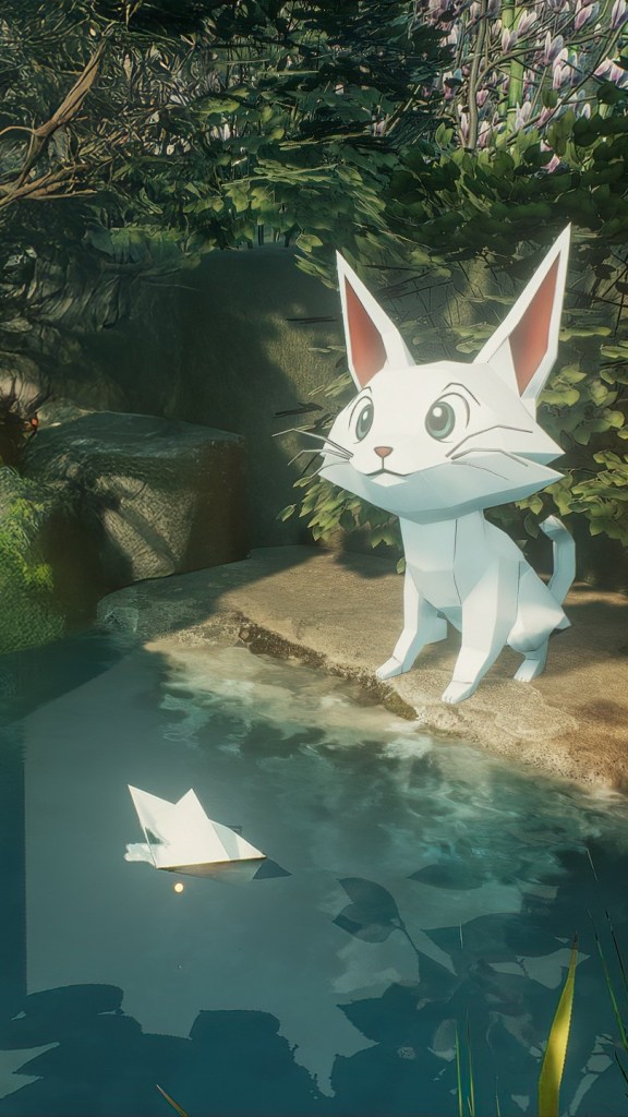 Curiosamente, para un juego centrado en el origami, lo único hecho de papel es el personaje y un pequeño gato que ocasionalmente funciona como guía. El resto del mundo es realista, una decisión estética que resulta extraña al principio pero termina funcionando.